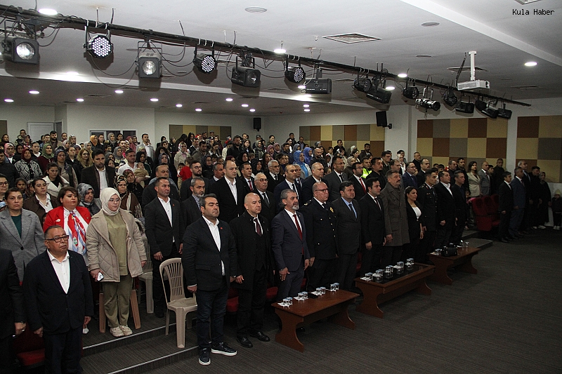 Şehit Ömer Halisdemir ve Yunus Emre Kent Meydanı’nda düzenlenen çelenk sunma töreninde, saygı duruşunda bulunulması ve İstiklal Marşı’nın okunmasının ardından Atatürk Anıtı’na Kula İlçe Milli Eğitim Müdürlüğü çelengi sunuldu. Çelenk sunma töreninin ardından olumsuz hava koşulları sebebiyle Yunus Emre Kültür Merkezi’ne kutlama programına geçildi. Programda Milli Eğitim Bakanı Yusuf Tekin’in kutlama mesajının okunmasının ardından Günün anlam ve önemini belirten konuşmayı İlçe Milli Eğitim Müdürü Ahmet Taşçı yaptı. Konuşmaların ardından Kahramanmaraş ve Şanlıurfa illerinde meydana gelen silahlı saldırılar dolayısıyla hayatını kaybeden öğrenciler ve Ayla Kara öğretmen anısına İlçe Müftüsü Mehmet Nerkiz tarafından dualar edildi. Programın devamında şiirler okundu, öğrenciler tarafından hazırlanan tiyatro gösterileri sergilendi. Günün önemine binaen ilçe genelinde düzenlenen yarışmalarda dereceye giren öğrencilere ödüller verilmesiyle program son buldu.