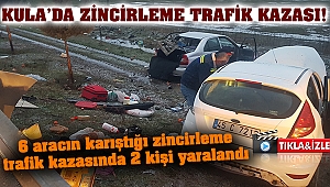 Kaza, saat 18.45 sıralarında İzmir Ankara D300 karayolu Gökçeören kavşağı Kovukdere rampaları yakınlarında meydana geldi. Edinilen bilgiye göre, Kula’dan İzmir istikametine seyir halinde olan Selma Ş. idaresindeki 64 EU 316 plakalı otomobil, kayganlaşan yolda kontrolden çıkarak yol kenarında bulunan tarlaya uçtu. Ardından, aynı istikamette seyir halinde olan Gürkan M. idaresindeki 45 C 7212 plakalı otomobil sürücüsü ile 10 L 2004 plakalı otomobil sürücüsü Sinan K., kazaya yapan araca yardımcı olmak için, yol kenarında durdu. Yardım maksadıyla aracını yol kenarına bırakan Gürkan M.’nin 45 C 7212 plakalı aracına, aynı yönde seyreden Şenol M. idaresindeki 35 GD 6855 plakalı otomobil vurdu. Yol kenarında park halindeki Gürkan M.’nin 45 C 7212 plakalı otomobili de, çarpmanın etkisiyle ilk kaza yapan aracın yanına uçtu. Bu esnada yardım etmek için duran 10 L 2004 plakalı otomobil sürücüsü Sinan K., iki aracın arasında kalarak yaralandı. Kazayı görenlerin haber vermesi üzerine olay yerine çok sayıda sağlık, itfaiye, polis ve jandarma ekipleri sevk edildi. Kısa sürede olay yerine gelen sağlık ekipleri, zincirleme kazada yaralanan Sinan K. ile Şenol M.’ye ilk müdahaleyi olay yerinde yaptı. Ardından Kula Devlet Hastanesine kaldırılan yaralılar, burada tedavi altına alındı.