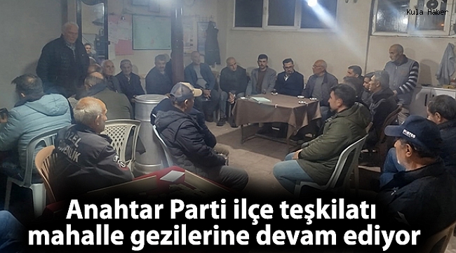 Anahtar Parti Kula İlçe Başkanı Talha Kara ve yönetim kurulu üyeleri, saha çalışmaları kapsamında Ayvatlar Mahallesi’ni ziyaret ederek mahalle sakinleriyle bir araya geldi. Mahalle toplantısında vatandaşların talepleri, beklentileri ve bölgeyle ilgili sorunları dinleyen parti heyeti, çözüm önerileri ve yürütülen çalışmalar hakkında bilgi verdi.