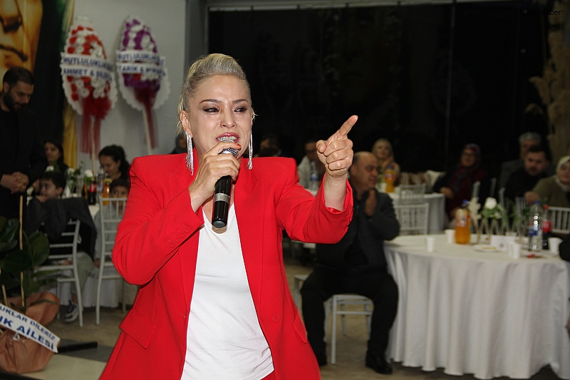 Ats Park Düğün Salonu’nda gerçekleştirilen nişan merasimi, yoğun katılım ve coşkulu atmosferiyle adeta düğünleri aratmadı. Şık dekorasyonu ve özenle hazırlanan organizasyonuyla dikkat çeken gecede, davetliler unutulmaz anlar yaşadı. Genç çiftin heyecanı ve mutluluğu gözlerinden okunurken, ailelerin gururu ve sevinci geceye damga vurdu. Gecenin en dikkat çeken anlarından biri ise ünlü sanatçı İnci Mercan’ın sahne alması oldu. Sevilen şarkılarını seslendiren Mercan, güçlü performansı ve sahne enerjisiyle davetlilere müzik dolu keyifli dakikalar yaşattı. Katılımcılar, sanatçının şarkıları eşliğinde doyasıya eğlenirken, gece adeta bir şölen havasına dönüştü. Gecede ayrıca anlamlı ve özel bir an da yaşandı. Genç çiftin nişan yüzükleri, sanatçı İnci Mercan tarafından kesildi. Bu özel an öncesinde kısa bir konuşma yapan Mercan, “Hayatımın en heyecanlı anlarından birini yaşıyorum. İlk defa genç bir çiftin yüzüklerini takıyorum. İnşallah düğünlerini görmek de bizlere nasip olur” ifadelerini kullandı. Mercan’ın bu sözleri davetliler tarafından büyük alkış aldı.