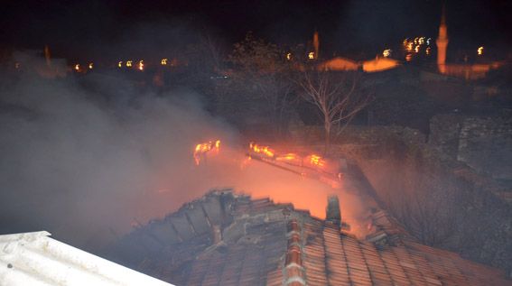 Yangında, ev tamamen yanarken dar sokakta evlerin bitişik olması ve diğer evlere yangının sıçramamsı olası bir tehlike önlenmiş oldu