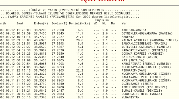 Merkez üssu Akhisar ilcesi olan ve saat 11.26 da 5.0 büyüklüğunde meydana gelen deprem Kula ilçesindede hissedildi.