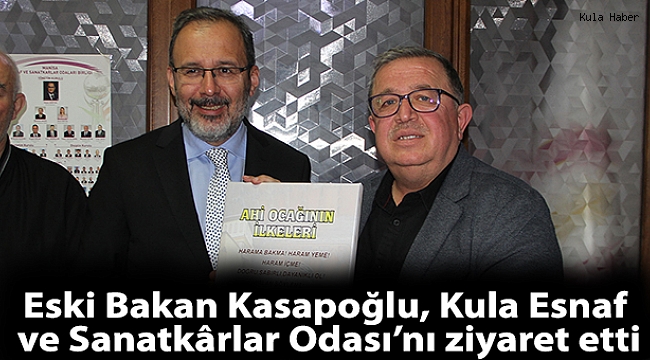 Kula Esnaf ve Sanatkârlar Odası Başkanı Aytekin Şadan ise ziyaretten duyduğu memnuniyeti ifade ederek, “Sayın Bakanımızı odamızda ağırlamaktan büyük mutluluk duyduk. Kula esnafımızın talepleri, sorunları ve çözüm önerileri konusunda kendisine bilgi verdik. İlçemizin gelişimi için verilen her türlü destek bizler için çok kıymetli. Esnafımızın güçlenmesi adına iş birliğimizin devam edeceğine inanıyoruz” diye konuştu. Samimi bir atmosferde geçen ziyaret, karşılıklı görüş alışverişleriyle son buldu. Kasapoğlu, oda yönetimine çalışmalarında başarılar dileyerek Kula’daki temaslarına devam etti.