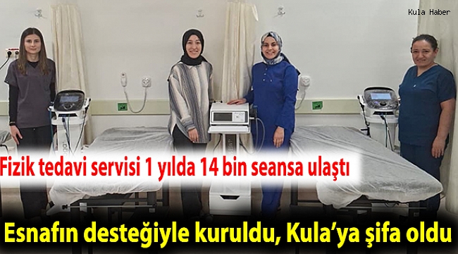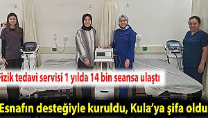 Kula Devlet Hastanesi bünyesinde, Kula Esnaf ve Sanatkârlar Kredi Kefalet Kooperatifi’nin yaklaşık 2 milyon 500 bin TL’lik desteğiyle kurulan Fizik Tedavi ve Rehabilitasyon Servisi, bir yıl içinde yaklaşık 1000 hastaya toplam 14 bin seans hizmet vererek ilçe halkına önemli bir sağlık hizmeti sundu.