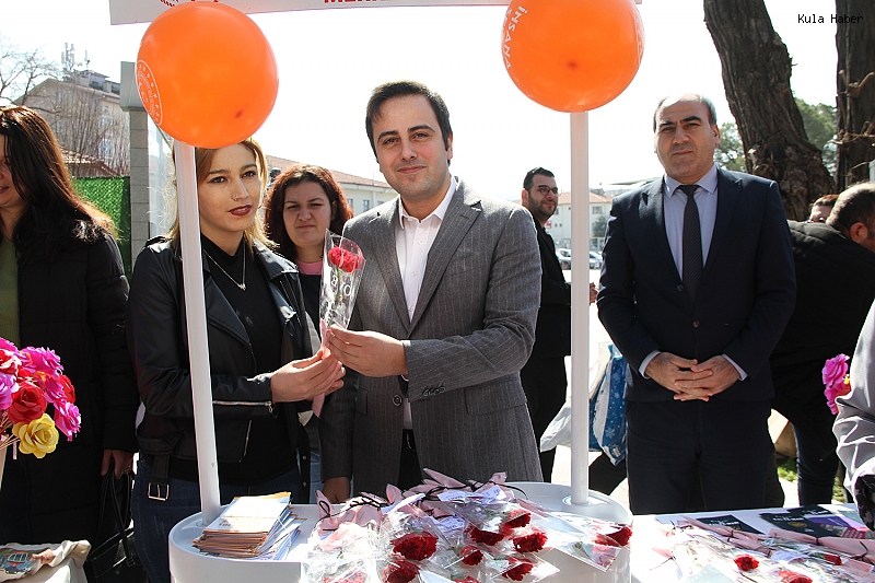 İlçe merkezinde kurulan stantta kadınlara karanfil dağıtılırken, kadına yönelik şiddetle mücadele konusunda bilgilendirici el ilanları da vatandaşlara ulaştırıldı. Kula 80. Yıl Engelsiz Yaşam Bakım ve Rehabilitasyon Merkezi Müdürlüğü tarafından kurulan stantta, kolluk kuvvetlerinin de desteğiyle vatandaşlara kadına yönelik şiddet konusunda bilgilendirme yapıldı. Etkinlik kapsamında özellikle kadınlara karanfil takdim edilerek günleri kutlandı ve hazırlanan bilgilendirici broşürler dağıtıldı.