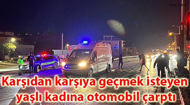 Manisa’nın Kula ilçesinde D300 karayolu üzerinde karşıdan karşıya geçmek isteyen yaşlı kadına otomobil çarptı. Yaralanan kadın hastaneye kaldırılarak tedavi altına alındı.