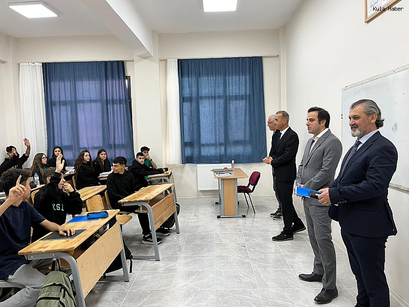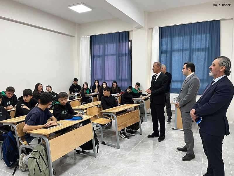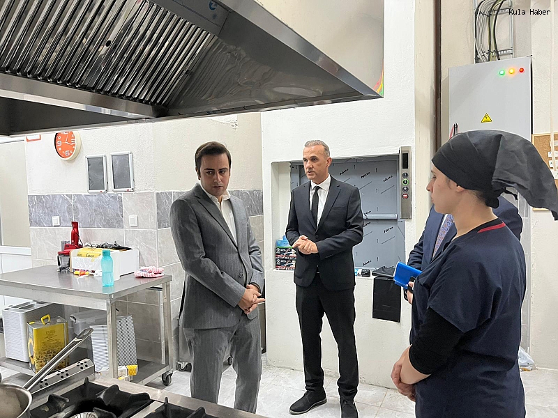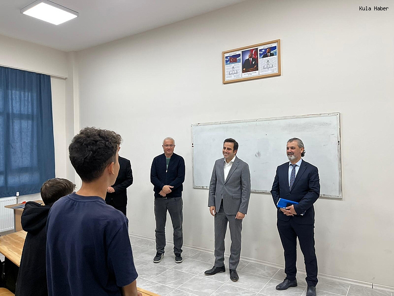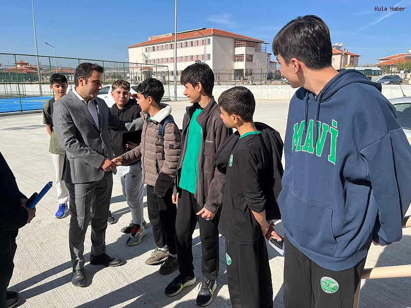 Kula Kaymakamı Talha Altuntaş, İlçe Milli Eğitim Müdürü Ahmet Taşçı ile birlikte bu yıl eğitim öğretim hayatına başlayan Kula Spor Lisesi’ni ziyaret etti.