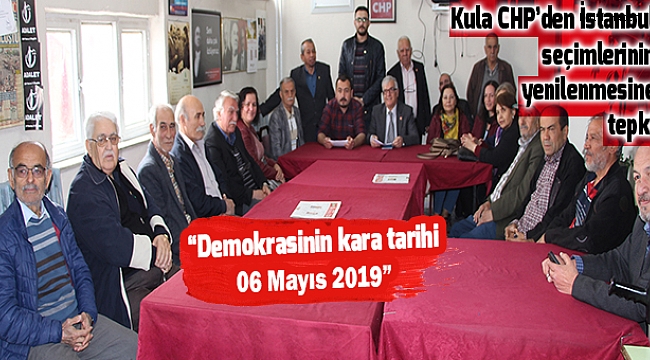Cumhuriyet Halk Partisi Kula İlçe Başkanlığı’nda yapılan açıklamada, CHP Kula eski ilçe başkanı Osman Kasırga, alınan karara tepkili olduklarını ifade etti. 6 Mayıs 2019 tarihinin, Yüksek Seçim Kurulu tarafından alınan İstanbul Büyükşehir Belediye Başkanlığı seçiminin yenilenmesi kararı ile demokrasi tarihine kara bir gün olarak geçtiğini belirten Kasırga; “ 6 Mayıs 2019 ülkemizin demokrasi tarihine kara bir gün olarak geçmiştir. Bu tarih hiç unutulmayacaktır. Hukukun, adaletin, temiz siyaset ve ekonomik istikrarın tek bir kişinin şahsi korku ve hırsına bu şekilde feda edildiği başka bir örnek tarihimizde yoktur. Halkın açık tercih ve talimatını ayaklar altına alan demokrasi düşmanları, sivil darbe sürecinde bir adım daha atmışlar ve bilerek, isteyerek, planlı bir hukuk cinayeti işlemişlerdir.