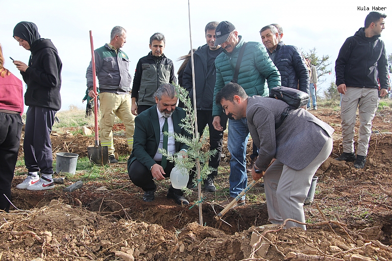 Orman İşletme müdürlüğü tarafından düzenlenen fidan dikim etkinliğine Kula Kaymakamı Talha Altuntaş, İlçe Jandarma Komutan vekili Kıdemli Üstçavuş Serkan Salcı, Kula Orman İşletme Şefi Veli Kılıç, Divlit Orman İşletme Şefi Cihat Yıldırım, İlçe Milli Eğitim Müdürü Ahmet Taşçı, kamu kurum ve kuruluş başkanları, daire amirleri, öğretmenler, öğrenciler ve mahalleli vatandaşlar katıldı.