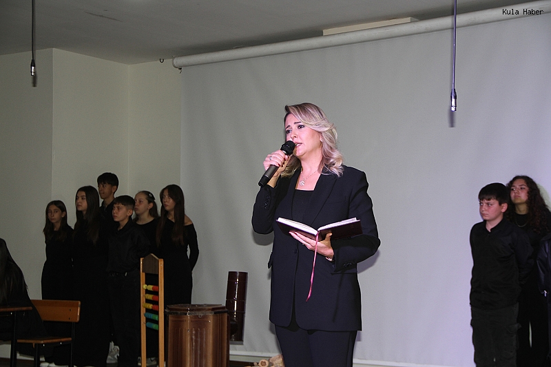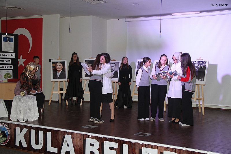 Kula'da 24 Kasım Öğretmenler Günü dolayısıyla düzenlenen program, Kent Meydanı'nda bulunan Atatürk Anıtı'na çelenk sunumu ile başladı. Daha sonra Vali Muzaffer Ecemiş Ortaokulu ve Vali Muzaffer Ecemiş İlkokulu tarafından hazırlanan program, saygı duruşunda bulunulması ve İstiklal Marşı'nın okunmasıyla başladı Haftanın önemine binaen düzenlenen yarışmalarda dereceye giren öğrenciler ve öğretmen protokol üyeleri tarafından ödüllendirildi.