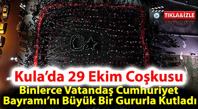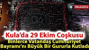 Kutlama etkinlikleri, saat 19.23’te başlayan fener alayı yürüyüşü ile başladı. Kula Yunus Emre Anadolu Lisesi önünden başlayan yürüyüş, Selim–Sabahat Palanduz Anadolu Lisesi Bando Takımı eşliğinde gerçekleştirildi. Yüzlerce öğrencinin katıldığı yürüyüşte ellerinde Türk bayrakları taşıyan vatandaşlar, “Cumhuriyet Bizim” sloganlarıyla Kula sokaklarını kırmızı beyaza bürüdü. Bando takımının ritmik ezgileri eşliğinde ilerleyen kortejde yaklaşık 1000 kişiden oluşan dev bayrak koreografisi büyük beğeni topladı. Vatandaşlar, dev Türk bayrağını gururla taşıyarak, Cumhuriyet coşkusunu meydanlarda hep birlikte yaşadı. Yürüyüşün ardından etkinlikler, Kula Yunus Emre Kent Meydanı’nda düzenlenen gösterilerle devam etti. Meydanı dolduran yaklaşık 3000 kişilik kalabalık, gece boyunca renkli anlara tanıklık etti. Program kapsamında ilk olarak, Kula’da faaliyet gösteren tüm yaren ekipleri tarafından Aydın Zeybeği oynandı. Ardından, yaklaşık 1000 kişinin katılımıyla sergilenen “Harmandalı Zeybeği” gösterisi, geceye damgasını vurdu. Kula’nın kültürel mirasını yaşatan bu anlamlı gösteri, seyircilerden uzun süre alkış aldı.