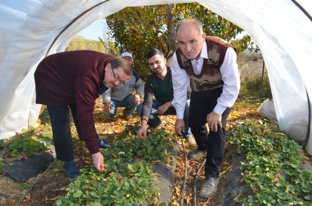 Fakat Ömer abimiz gibi önder çiftçiler vasıtasıyla hem çeşit değiştirerek yani 8-9 ay ürün veren çeşitlerle hem de örtü altına alarak bu işi daha ekonomik hale getirdik. Kasım ayındayız ve yılbaşı geliyor. Çilekleri gördünüz. Tabii bizim çileklerimizin özelliği yüzde yüze yakın doğal, organik yani birkaç hasat sürecinde ilaçlamaya dikkat edilen ürün ilaçları dışında kontrollü olarak, hem ben hem de firmalarımızda çalışan mühendis arkadaşlarla kontrolü yapılmakta. Kalıntı dediğimiz sorunu sıfır olan ürünler yetiştirilmektedir. Bu noktada da hem 8-9 ay ürün veren yeni çeşit bulduğu için, gayret ettiği için hem de örtü altına almak, gerçekten cesaret isteyen ve belli bir maliyeti olan bir işti.