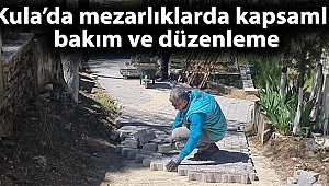 Manisa Büyükşehir Belediyesi Kula Koordinatörü Adem Yardımcı tarafından yapılan açıklamada, Besim Dutlulu’nun öncülüğünde, Mezarlıklar Dairesi Başkanlığı koordinesinde yürütülen çalışmalar kapsamında mezarlık alanlarında kapsamlı iyileştirmelerin gerçekleştirildiği belirtildi. Açıklamaya göre, Kula’daki mezarlıklarda detaylı temizlik ve otla mücadele çalışmaları yapılırken, alanlar tel çitlerle çevrilerek koruma altına alındı. Ayrıca kilit parke taşı döşeme işlemleriyle mezarlık içi yollar daha düzenli ve kullanışlı hale getirildi.