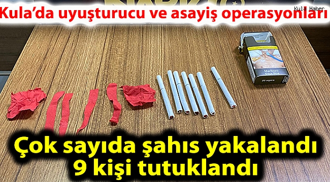 Manisa’nın Kula ilçesinde İlçe Emniyet Müdürlüğü ekipleri tarafından uyuşturucu ile mücadele ve aranan şahıslara yönelik gerçekleştirilen çalışmalar kapsamında çok sayıda şüpheli yakalandı. Yapılan operasyonlarda sentetik kannabinoid (bonzai), metamfetamin, esrar, uyuşturucu yapımında kullanılan maddeler ile uyuşturucu aparatları ele geçirilirken, çeşitli suçlardan haklarında kesinleşmiş hapis cezası bulunan şahıslar da gözaltına alındı. İşlemleri tamamlanan şüphelilerden 9’u tutuklanarak cezaevine gönderildi, diğer şahıslar ise adli işlemlerinin ardından serbest bırakıldı.