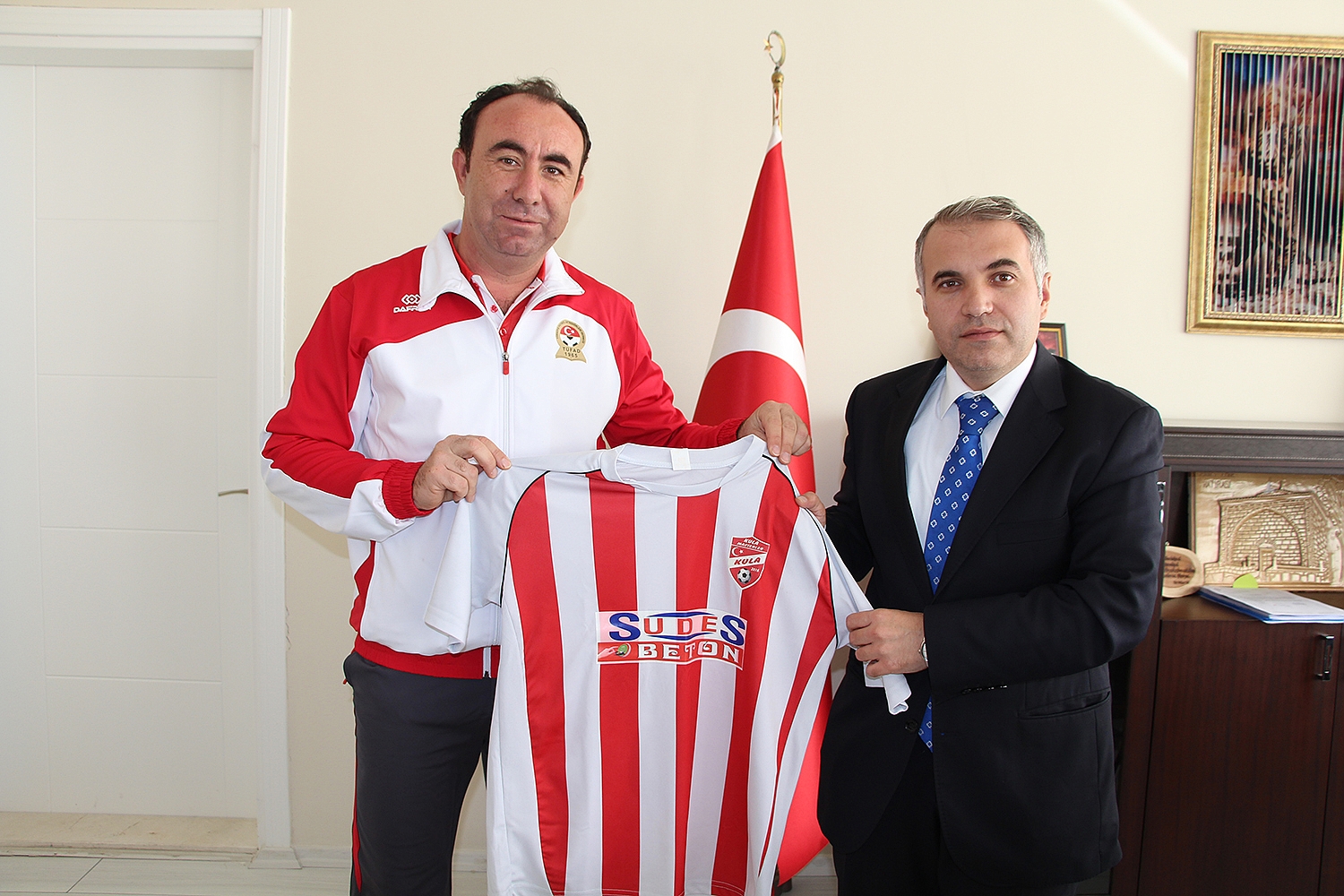 Ege Veteranlar Futbol Federasyonunda Kula’yı temsil eden Kula Masterler, Kula Kaymakamı Kemal Duru’yu makamında ziyaret ederek takımın forma ve eşofmanını hediye etti.