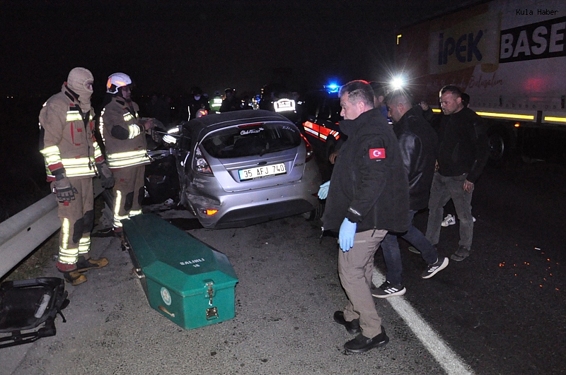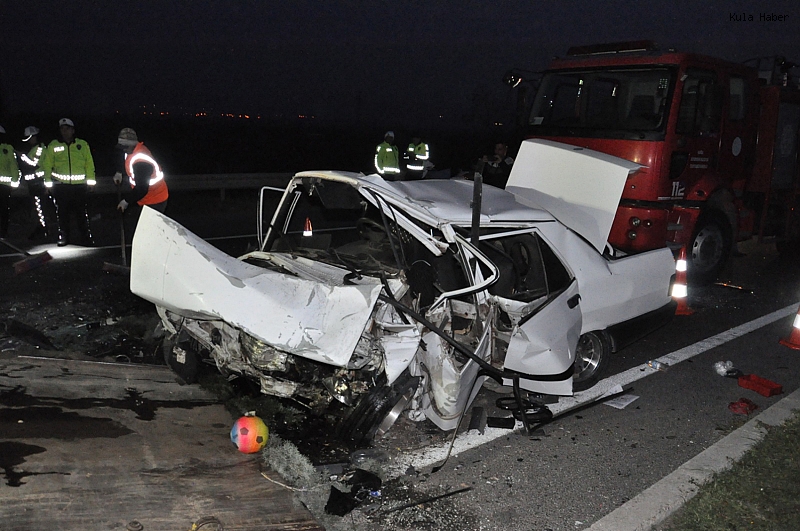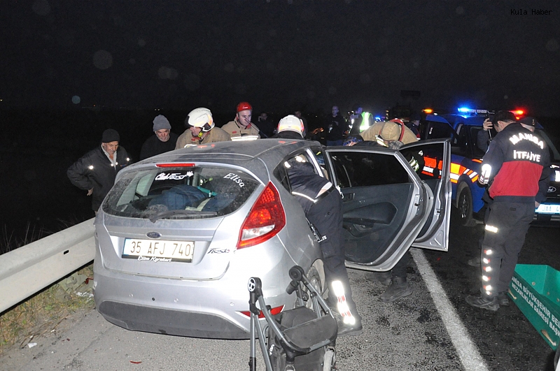 Kaza, İzmir-Ankara D300 Karayolu Durasıllı Mahallesi mevkiinde meydana geldi. Edinilen bilgilere göre, Kula yönünden Salihli istikametine seyir halinde olan Samet Ulusoy (33) idaresindeki 45 ZB 9240 plakalı otomobil, sürücüsünün direksiyon hakimiyetini kaybetmesi sonucu karşı şeride geçti. Bu sırada Salihli yönünden Kula istikametine seyreden Ali Karakurt (35) yönetimindeki 35 AFJ 740 plakalı otomobil ile Hasan Evren (44) idaresindeki 34 CDT 249 plakalı otomobille çarpıştı. Feci kazanın ardından olay yerine çok sayıda sağlık, itfaiye, polis ve jandarma ekibi sevk edildi. Sağlık ekiplerinin yaptığı incelemede, sürücüler Samet Ulusoy ve Ali Karakurt’un olay yerinde hayatını kaybettiği belirlendi. Kazada yaralanan Sinem Karakurt (29), Esra Kaygısız (28), Elisa Karakurt (3), Aras Kaygısız (1) ve Adile Emrem (34), olay yerindeki ilk müdahalelerinin ardından ambulanslarla Salihli Devlet Hastanesi ve özel bir hastaneye kaldırıldı. Yaralılardan Sinem Karakurt, Esra Kaygısız ile çocuklar Elisa Karakurt ve Aras Kaygısız’ın hayati tehlikesinin bulunduğu öğrenildi.
