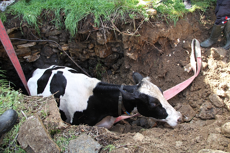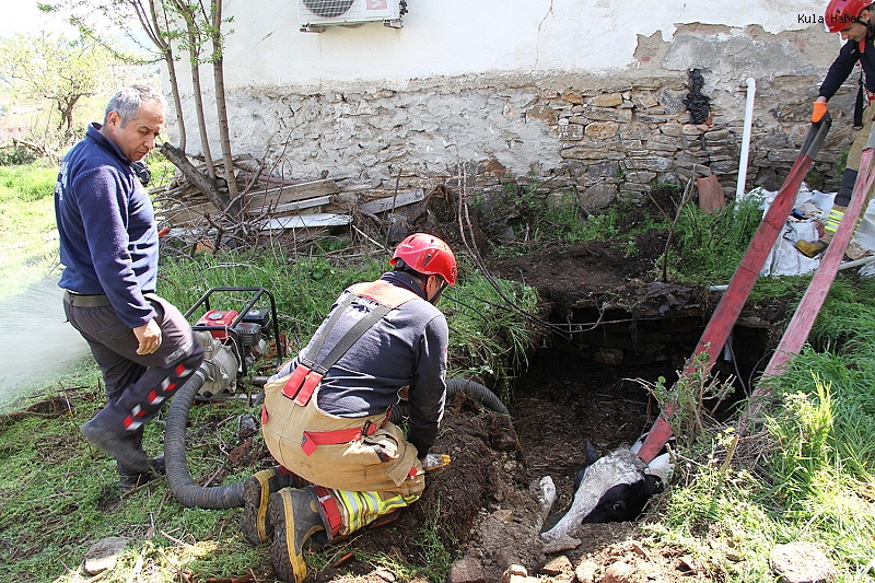 Kula’ya bağlı kırsal Narınca Mahallesi’nde çiftçilik ve hayvancılık yaparak geçimini sağlayan Bahattin Sarı’nın 7 aylık hamile ineği ikametin yakınlarında otlanırken, kuyuya düştü. Büyükbaş hayvanın kuyuya düştüğünü göre çiftçi Sarı, Manisa Büyükşehir Belediyesi Kula İtfaiye Amirliği ekiplerinden yardım istedi. Olay yerine gelen itfaiye ekipleri, ilk olarak kuyuda bulunan suyu tahliye etti. Ardından iş makinesi yardımıyla kuyunun yan kısmında bir çıkış yolu açıldı. Yapılan dikkatli çalışmaların ardından hamile inek, açılan yoldan yürüyerek kuyudan çıkarıldı. Kurtarma çalışmaları sırasında herhangi bir yaralanma yaşanmazken, ineğin sağlık durumunun iyi olduğu öğrenildi. Öte yandan, ineğin kurtarıldığı anlar çevredeki vatandaşlar tarafından ilgiyle izlenirken, zaman zaman renkli görüntüler de ortaya çıktı. İneğin sahibi Bahattin Sarı ve ailesi, büyükbaş hayvanlarını canlı olarak kurtaran itfaiye ekiplerine teşekkür etti.