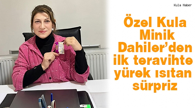 İlk teravih için camiye gelen çocukların ayakkabılarının içine mini çikolatalar bırakıldı. Küçük sürprizler, büyük mutluluklara dönüştü. Konuya ilişkin açıklamada bulunan Özel Kula Minik Dahiler Anaokulu Müdürü Nurdane Aydın, şu ifadeleri kullandı: “Camide gülüşen çocuk sesleri yoksa gelecek nesiller adına korkun. Biz çocuklarımızın camiyi sevgiyle, huzurla ve neşeyle hatırlamasını istiyoruz. İlk teravihte camiyi şenlendiren miniklerimize küçük bir notla birlikte çikolatalar bıraktık. Notta, ‘Sen camiyi şenlendirdin, yine gel kanka’ sözleri yer aldı.” Aydın, yapılan çalışmanın bir gönül köprüsü niteliği taşıdığını vurgulayarak şöyle devam etti: “Maarifin Kalbinde Ramazan anlayışıyla hareket ediyoruz. Amacımız çocuklarımızın manevi duygularını pekiştirmek, cami kültürüyle sevgi temelli bir bağ kurmalarını sağlamak. Küçük bir çikolata belki maddi olarak büyük bir şey değil ama o an yaşanan mutluluk, hafızalarında kalıcı bir hatıra bırakacaktır.”