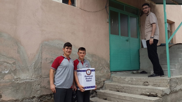 Selim Sabahat Palanduz Anadolu Lisesi'nde öğrenim gören öğrenciler, okulun Din Kültürü ve Ahlak Bilgisi öğretmeni koordinatörlüğünde başlattıkları ‘Ramazan Paylaşmaktır’ projesi kapsamında, ilçeledeki Suriyeli ve ihtiyaç sahibi ailelere temel gıda yardımında bulundu.