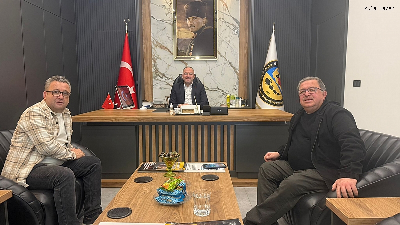 Kula Esnaf ve Sanatkârlar Odası Başkanı Aytekin Şadan ile gazetemiz Koordinatörü Hasan Yiğen, Alaşehir Esnaf ve Sanatkârlar Kredi ve Kefalet Kooperatifi Başkanı Fatih Çataldere’yi makamında ziyaret etti.
