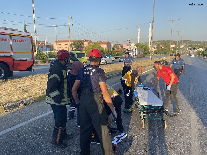 Manisa’nın Kula ilçesinde seyir halindeki motosiklet, sürücüsünün kontrolünü kaybetmesi sonucu devrildi. Devrilen motosikletten savrulan yaralı vatandaşın durumunun iyi olduğu öğrenildi.