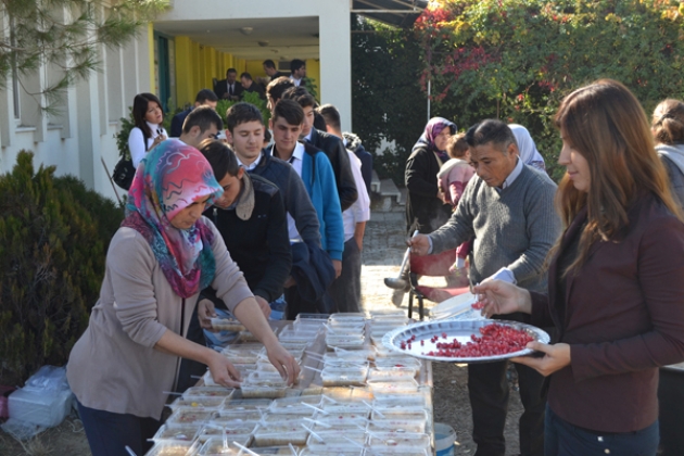 Ticaret Meslek Lisesi Okul Müdürü Metin Damar, "Okul aile birliği, okul idaresi ve okul öğretmenlerimizin katkılarıyla Muharrem ayı münasebetiyle aşure dağıtımı yaptık. Bundan sonraki yıllarda da aşure dağıtarak geleneksel hale getirmeye çalışıyoruz. Bizi bugünde yalnız bırakmayan herkese teşekkür ederim. Bunda sonraki yıllarda da aşure dağıtımı yapmayı planlıyoruz" diye konuştu.