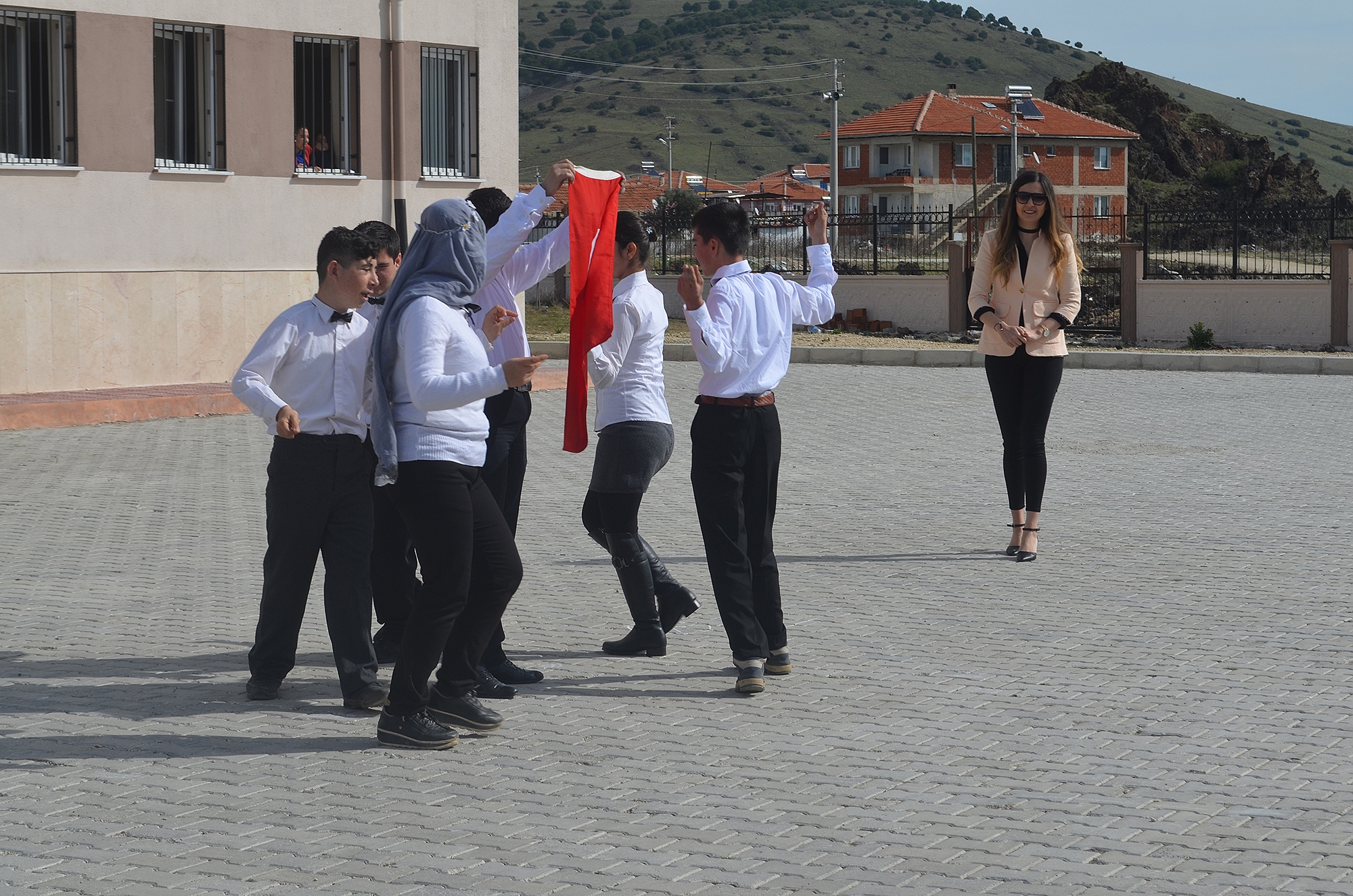 Beden Eğitimi Öğretmeni Sibel Çağan tarafından hazırlanan bayrak temalı canlandırma ise büyük alkış topladı. Okulun tüm öğrencileri tarafından oluşturulan hilal ve yıldız tablosu finalinde protokol önünde büyük bayrak açılarak final yapıldı . Ata sporumuz olan güreşten yarışmalar bölümünde “minder güreşi” örnekleri verildi.